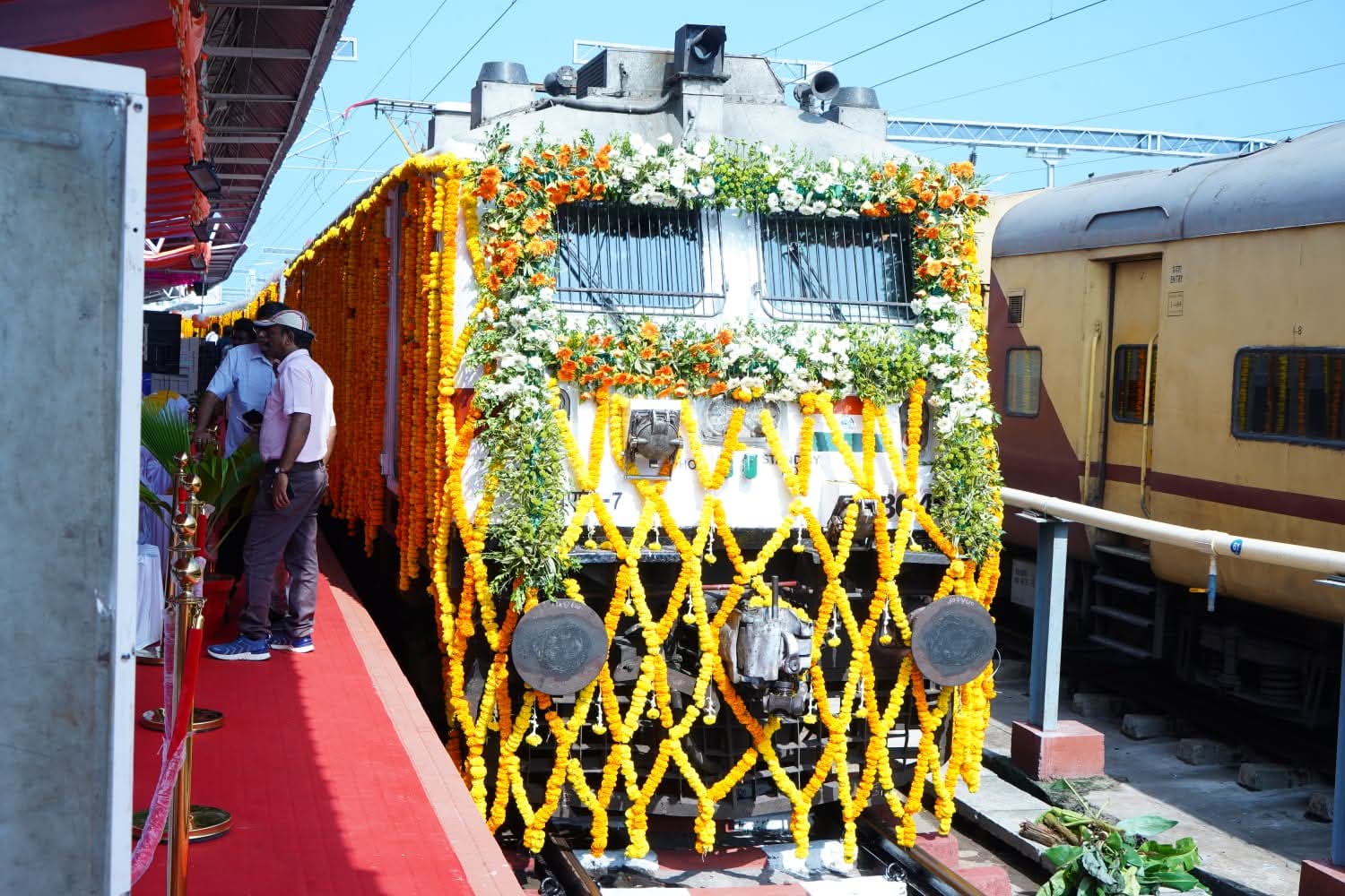 ಹೂವುಗಳಿಂದ ಅಲಂಕೃತಗೊಂಡಿದ್ದ ಈ ರೈಲು ತಮಿಳುನಾಡು, ಕೇರಳ ಮತ್ತು ಕರ್ನಾಟಕ ರಾಜ್ಯಗಳನ್ನು ಬೆಸೆಯುವ ಹೊಸ ಕರಾವಳಿ ಕಾರಿಡಾರ್ಗೆ ನಾಂದಿ ಹಾಡಿದೆ.