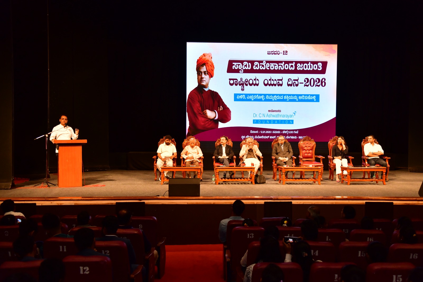 ಕಾರ್ಯಕ್ರಮವನ್ನು ಉದ್ದೇಶಿಸಿ ಮಾತನಾಡಿದ ಡಾ. ಸಿ.ಎನ್. ಅಶ್ವಥನಾರಾಯಣ ಅವರು, ರಾಷ್ಟ್ರೀಯ ಯುವ ದಿನವು ಕೇವಲ ಆಚರಣೆಯ ದಿನವಲ್ಲದೆ ಯುವಶಕ್ತಿಯನ್ನು ಜಾಗೃತಗೊಳಿಸುವ ಮಹತ್ವದ ಸಂದರ್ಭವೆಂದು ಹೇಳಿದರು. ಯುವಕರು ತಮ್ಮ ಜೀವನದಲ್ಲಿ ಸ್ಪಷ್ಟ ಗುರಿಯನ್ನು ಹೊಂದಿ, ಸವಾಲುಗಳನ್ನು ಧೈರ್ಯದಿಂದ ಎದುರಿಸಿ, ನ್ಯಾಯಸಮ್ಮತ ಮಾರ್ಗದಲ್ಲಿ ಸಾಧನೆ ಮಾಡಬೇಕು ಎಂದು ಅವರು ತಿಳಿಸಿದರು. ಅಕಾಡೆಮಿಕ್ ಸಾಧನೆಯ ಜೊತೆಗೆ ಆತ್ಮಾವಲೋಕನ, ವ್ಯಕ್ತಿತ್ವ ಅಭಿವೃದ್ಧಿ ಮತ್ತು ಸಮಾಜದ ಹೊಣೆಗಾರಿಕೆಯನ್ನು ಅರಿತುಕೊಳ್ಳುವುದು ಅಗತ್ಯವೆಂದು ಅವರು ಹೇಳಿದರು.