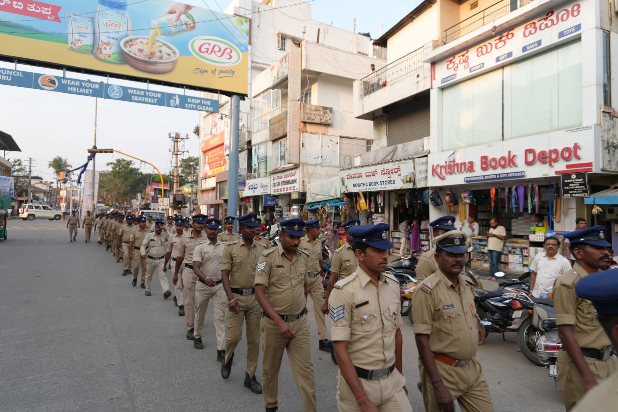 ನಗರದ ಆಯಕಟ್ಟಿನ ಸ್ಥಳಗಳು ಹಾಗೂ ಜನನಿಬಿಡ ರಸ್ತೆಗಳಲ್ಲಿ ಸಶಸ್ತ್ರ ಪಡೆಗಳೊಂದಿಗೆ ಸಾಗಿದ ಪೊಲೀಸ್ ತುಕಡಿಗಳು ಸಾರ್ವಜನಿಕರಲ್ಲಿ ಸುರಕ್ಷತೆಯ ಬಗ್ಗೆ ವಿಶ್ವಾಸ ತುಂಬಿದವು. ಶಾಂತಿ ಮತ್ತು ಸೌಹಾರ್ದತೆಯಿಂದ ಕಾರ್ಯಕ್ರಮ ಯಶಸ್ವಿಗೊಳಿಸಲು ಸಹಕರಿಸುವಂತೆ ಈ ಮೂಲಕ ಕೋರಲಾಯಿತು. ಜಿಲ್ಲಾ ಪೊಲೀಸ್ ವರಿಷ್ಠಾಧಿಕಾರಿಗಳ ನೇತೃತ್ವದಲ್ಲಿ ನಡೆದ ಈ ಪಥಸಂಚಲನದಲ್ಲಿ ನೂರಾರು ಪೊಲೀಸ್ ಸಿಬ್ಬಂದಿ ಪಾಲ್ಗೊಂಡಿದ್ದರು.