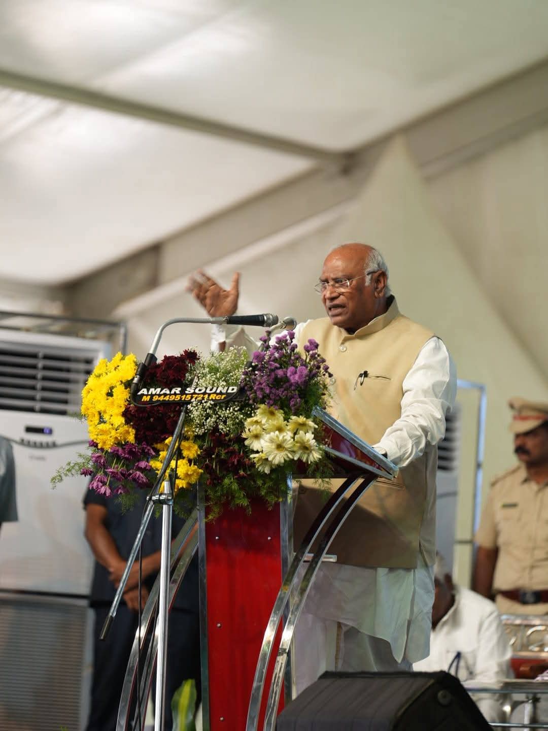 “ದೇಶದ ಸ್ವಾತಂತ್ರ್ಯಕ್ಕಾಗಿ ಒಂದು ಹನಿ ರಕ್ತವನ್ನೂ ಹರಿಸದ ಬಿಜೆಪಿ ಮತ್ತು ಆರ್ಎಸ್ಎಸ್ ನಾಯಕರು ಇಂದು ಕಾಂಗ್ರೆಸ್ ನಾಯಕರನ್ನು ಟೀಕಿಸುವುದನ್ನೇ ಕೆಲಸ ಮಾಡಿಕೊಂಡಿದ್ದಾರೆ” ಎಂದು ಎಐಸಿಸಿ ಅಧ್ಯಕ್ಷ ಮಲ್ಲಿಕಾರ್ಜುನ ಖರ್ಗೆ ತೀವ್ರ ವಾಗ್ದಾಳಿ ನಡೆಸಿ ಬಿಜೆಪಿಯ ದ್ವೇಷದ ರಾಜಕಾರಣ ಮತ್ತು ಪ್ರಾದೇಶಿಕ ಅಭಿವೃದ್ಧಿಯಲ್ಲಿನ ಅವರ ವಿಫಲತೆಯನ್ನು ಅಂಕಿಅಂಶಗಳ ಸಮೇತ ಬಿಚ್ಚಿಟ್ಟರು.