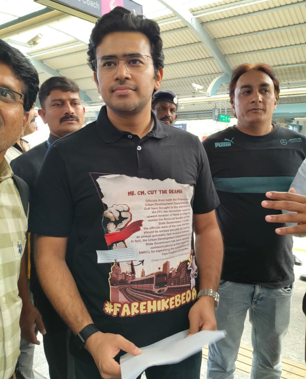 ನಂತರ ಪತ್ರಿಕಾಗೋಷ್ಠಿ ನಡೆಸು ಮಾತನಾಡಿದ ಅವರು,ಮೆಟ್ರೋ ದರ ಏರಿಕೆಗೆ ಕೇಂದ್ರ ಸರ್ಕಾರವೇ ಕಾರಣ ಎಂಬ ರಾಜ್ಯ ಸರ್ಕಾರದ ವಾದವು ಸಂಪೂರ್ಣ ಸುಳ್ಳು. ರಾಜ್ಯ ಸರ್ಕಾರದ ಹಣಕಾಸು ಮತ್ತು ನಗರಾಭಿವೃದ್ಧಿ ಇಲಾಖೆಯ ಅಧಿಕಾರಿಗಳೇ ಮೆಟ್ರೋ ಫೇರ್ ಫಿಕ್ಸೇಶನ್ ಕಮಿಟಿ (FFC) ಮುಂದೆ ಹಾಜರಾಗಿ, ದರ ಹೆಚ್ಚಳಕ್ಕೆ ಮತ್ತು ಪ್ರತಿ ವರ್ಷ ಸ್ವಯಂಚಾಲಿತ ದರ ಏರಿಕೆ (Automatic Annual Revision) ಜಾರಿಗೆ ತರುವಂತೆ ಒತ್ತಾಯಿಸಿದ್ದಾರೆ ಎಂದು ಸೂರ್ಯ ಅವರು ದಾಖಲೆಗಳನ್ನು ಬಿಡುಗಡೆ ಮಾಡಿದರು.