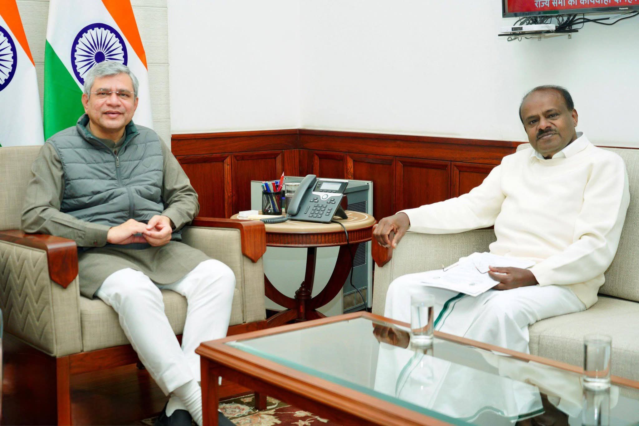 ಬಜೆಟ್ ನಂತರ ಕೇಂದ್ರ ಸಚಿವ ಹೆಚ್.ಡಿ. ಕುಮಾರಸ್ವಾಮಿ ಅವರು ಕೇಂದ್ರದ ರೈಲ್ವೆ, ಎಲೆಕ್ಟ್ರಾನಿಕ್ಸ್ ಮತ್ತು ಮಾಹಿತಿ ತಂತ್ರಜ್ಞಾನ, ಮಾಹಿತಿ ಪ್ರಸಾರ ಖಾತೆ ಸಚಿವರಾದ ಸಚಿವ ಅಶ್ವಿನಿ ವೈಷ್ಣವ ಅವರನ್ನು ಭೇಟಿಯಾಗಿ ಮಾತುಕತೆ ನಡೆಸಿದರು.ಮಂಡ್ಯ ಲೋಕಸಭೆ ಕ್ಷೇತ್ರಕ್ಕೆ ಸಂಬಂಧಿಸಿ ರೈಲ್ವೆ ಮೂಲಸೌಕರ್ಯ ವೃದ್ಧಿಸುವ ಹಾಗೂ ರಾಜ್ಯದ ಇನ್ನೂ ಬಾಕಿ ಉಳಿದಿರುವ ರೈಲ್ವೆ ಯೋಜನೆಗಳ ಬಗ್ಗೆ ಕುಮಾರಸ್ವಾಮಿ ಅವರು ಮಾತುಕತೆ ನಡೆಸಿದರು.