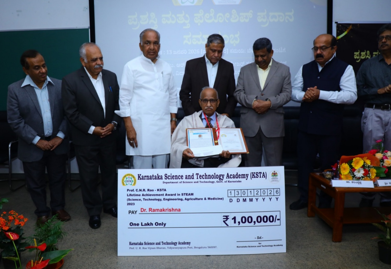 ವಿಜ್ಞಾನ ಮತ್ತು ತಂತ್ರಜ್ಞಾನ ಕ್ಷೇತ್ರಕ್ಕೆ ನೀಡಿದ ಅಪಾರ ಕೊಡುಗೆಗಾಗಿ ಭಾರತೀಯ ಪ್ರಾಣಿಶಾಸ್ತ್ರ ಸರ್ವೇಕ್ಷಣಾ ಇಲಾಖೆಯ (ZSI) ಮಾಜಿ ನಿರ್ದೇಶಕರು ಹಾಗೂ ಖ್ಯಾತ ವಿಜ್ಞಾನಿಗಳಾದ ಡಾ. ರಾಮಕೃಷ್ಣ ಅವರಿಗೆ ಈ ಪ್ರಶಸ್ತಿಯನ್ನು ನೀಡಿ ಗೌರವಿಸಲಾಯಿತು.